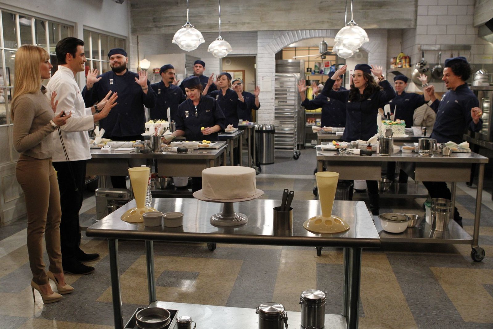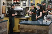 Der Cronut-WahnsinnDer neue Trend macht Max (Kat Dennings, r.) und Caroline (Beth Behrs, M.) zu schaffen. Cronuts sollen besser sein als Cupcakes? Um ihre Kunden dennoch nicht zu verlieren, muss Cronut Craig (Tony Cavalero, l.) herhalten ...Bild: © Warner Brothers Lizenzbild frei