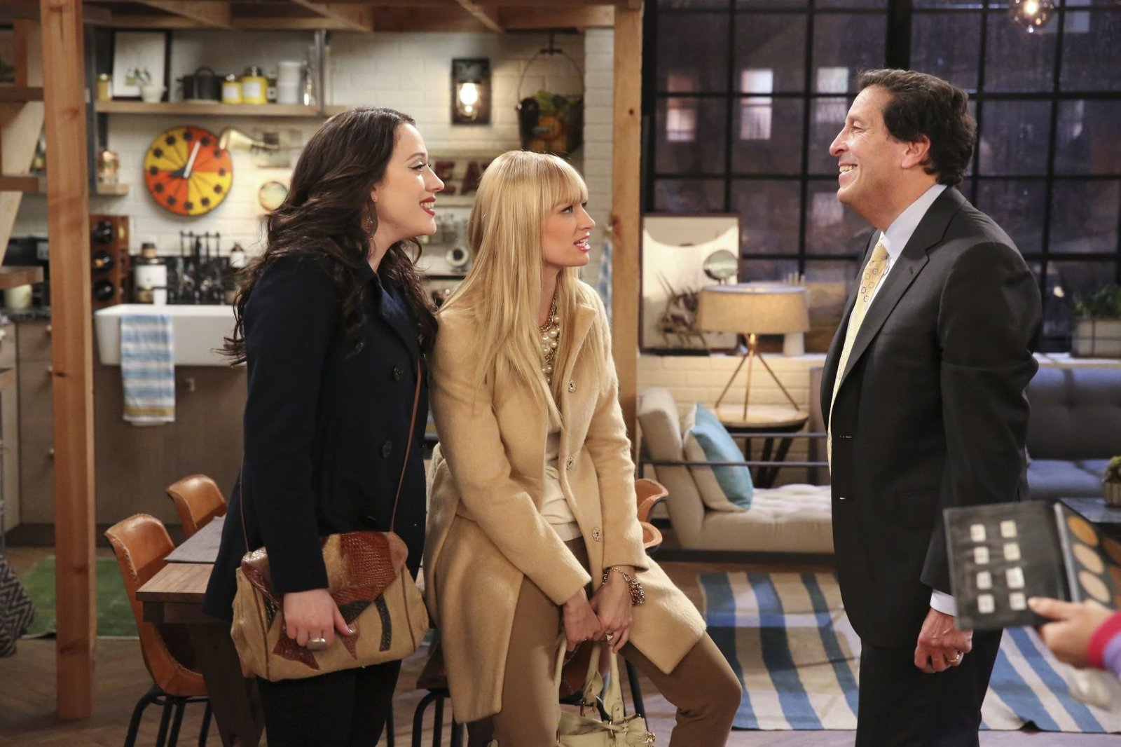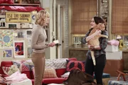 Angriff des Killer-ApartmentsSophie (Jennifer Coolidge, l.) kommt bei Caroline (Beth Behrs, r.) und Max vorbei, um einige Sachen in deren Apartment zu deponieren. Randy ist ebenfalls anwesend und freut sich auf die Nacht, die er dort verbringen wird. Die Freude währt jedoch nur kurz ...Bild: © 2016 Warner Brothers