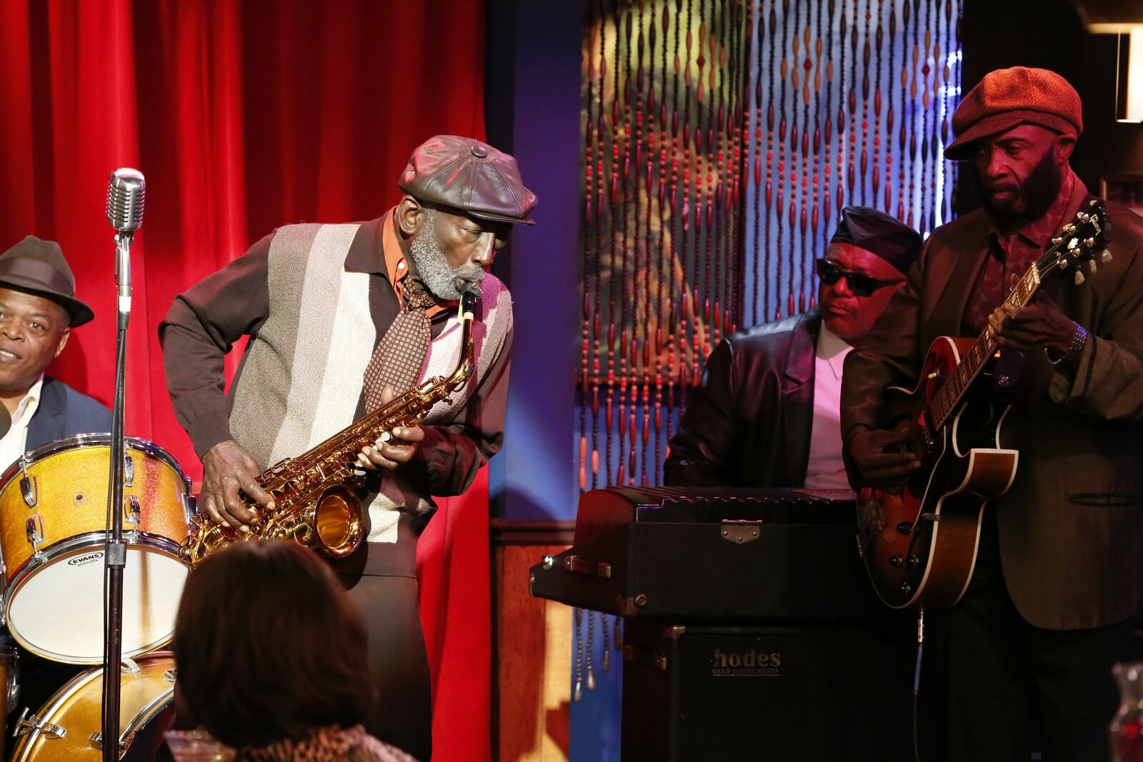 All That JazzDa tun sich ganz neue Welten auf: Caroline (Beth Behrs, l.) und Max (Kat Dennings, M.) erfahren von Earl (Garrett Morris, l.), dass er mal Saxophon in einer Jazzband gespielt hat. Diese gibt nun eine Reuinion-Show - zu der Earl nicht eingeladen wurde ...Bild: © 2015 Warner Brothers Lizenzbild frei