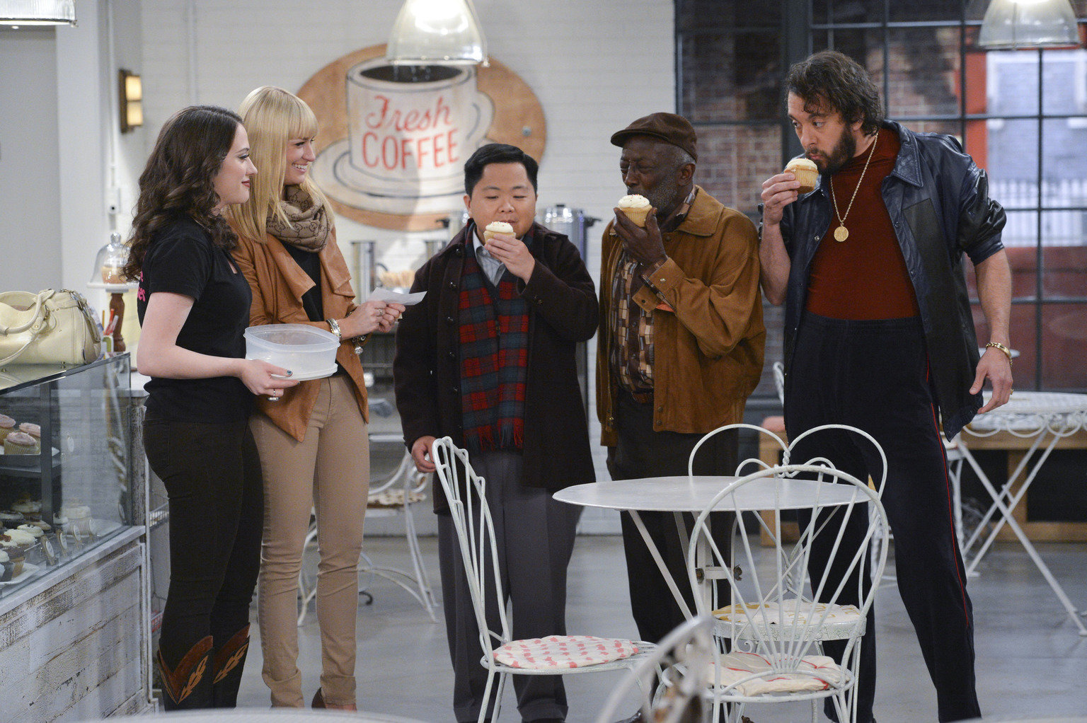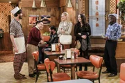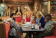 Eröffnung mit HindernissenWird sich für Max (Kat Dennings, l.), Caroline (Beth Behrs, 2.v.l.), Han (Matthew Moy, hinten), Oleg (Jonathan Kite, r.) und Earl (Garrett Morris, vorne) etwas ändern, nachdem das Diner nicht mehr nur von Han geleitet wird?Bild: © Warner Bros. Television