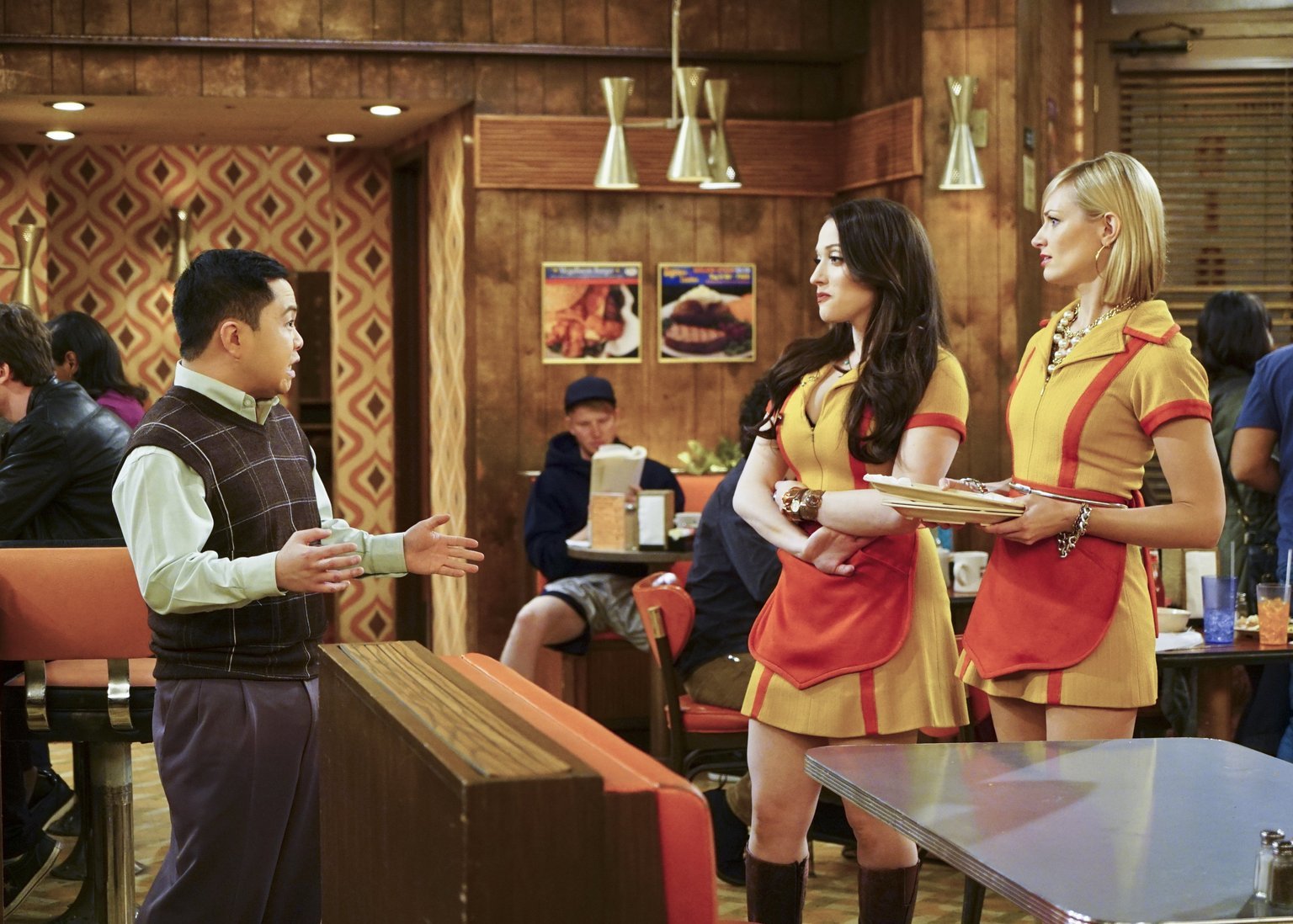 Die traurige GeschichteSind mit Han Lee (Matthew Moy, r.) nicht immer einer Meinung: Caroline (Beth Behrs, l.) und Max (Kat Dennings, r.) ...Bild: © 2016 Warner Brothers Lizenzbild frei