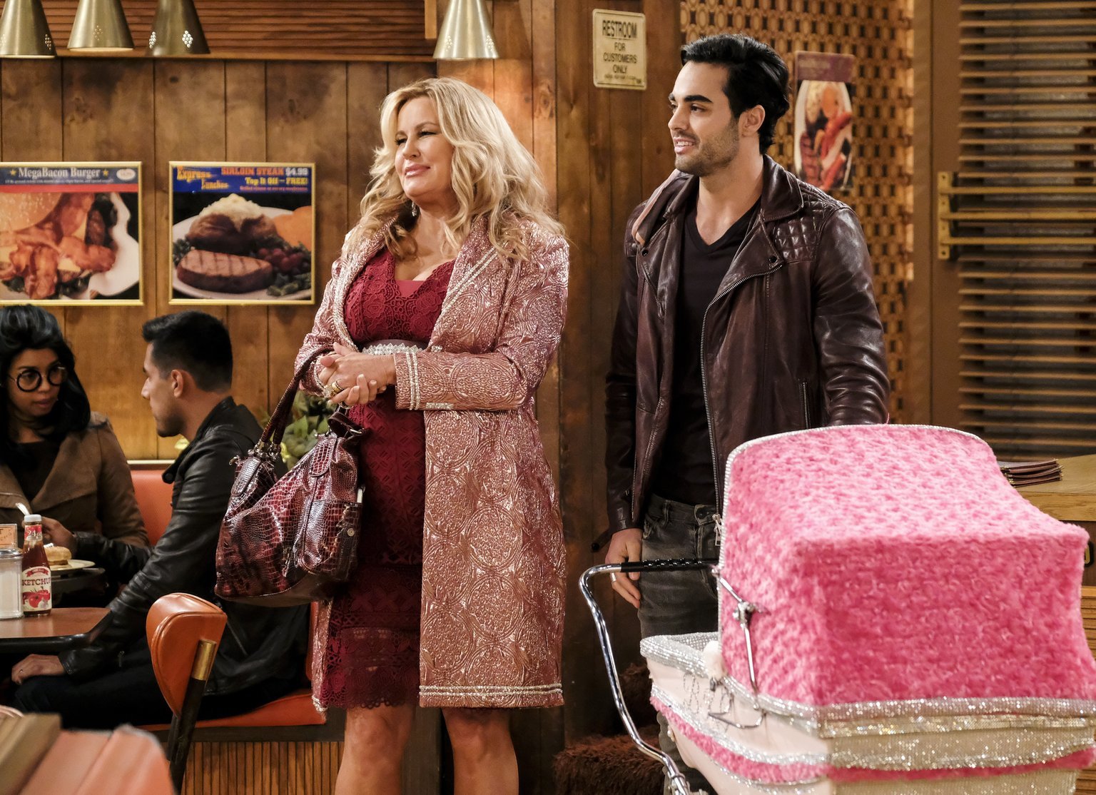Die AbrissbirneSie versuchen, einen Plan auszuhecken, um das Diner vor dem Abriss durch die Stadtverwaltung zu retten: Oleg (Jonathan Kite, l.), Max (Kat Dennings, M.) und Caroline (Beth Behrs, r.) ...Bild: © Warner Brothers Lizenzbild frei