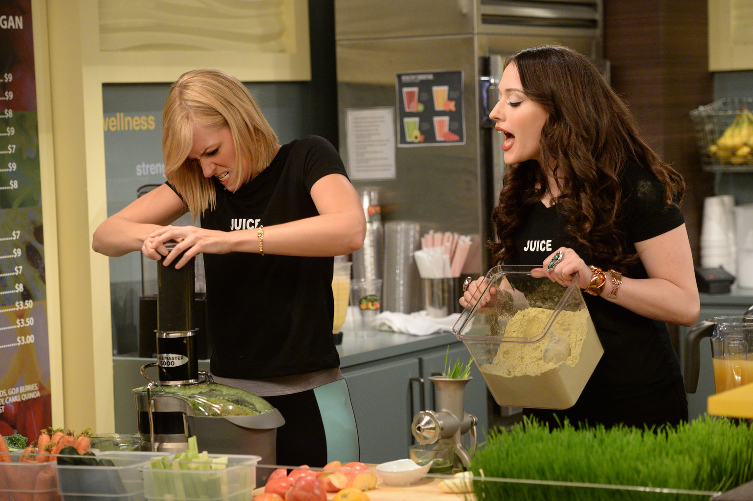 Der SaftladenUm die Duschen vor Ort nutzen zu können, heuern Caroline (Beth Behrs, l.) und Max (Kat Dennings, r.) in der Saftbar eines Fitnessstudios an ...Bild: © Warner Brothers Lizenzbild frei