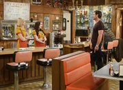 Eröffnung mit HindernissenWird sich für Max (Kat Dennings, l.), Caroline (Beth Behrs, 2.v.l.), Han (Matthew Moy, hinten), Oleg (Jonathan Kite, r.) und Earl (Garrett Morris, vorne) etwas ändern, nachdem das Diner nicht mehr nur von Han geleitet wird?Bild: © Warner Bros. Television