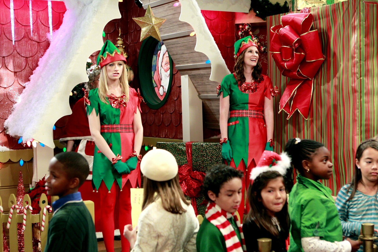 ElfenterrorUm zusätzliches Geld zu verdienen, verkleidet sich Caroline (Beth Behrs, l.) als Weihnachtselfe, um Kinder in einem Kaufhaus zu beschenken. Das sonst so feiertagsbegeisterte Mädchen muss die Arbeit allerdings mit einer so anstrengenden Kollegin verrichten, dass ihr der Spaß schnell vergeht ...Bild: © Warner Brothers Lizenzbild frei