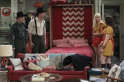 Das EinzugsdebakelSchnell wird Max (Kat Dennings, 2.v.l.) und Caroline (Beth Behrs, 2.v.r.) klar, dass die Idee von Oleg (Jonathan Kite, r.) und Sophie (Jennifer Coolidge, l.) zusammenzuziehen, nicht die beste war ...Bild: © Warner Bros. Television