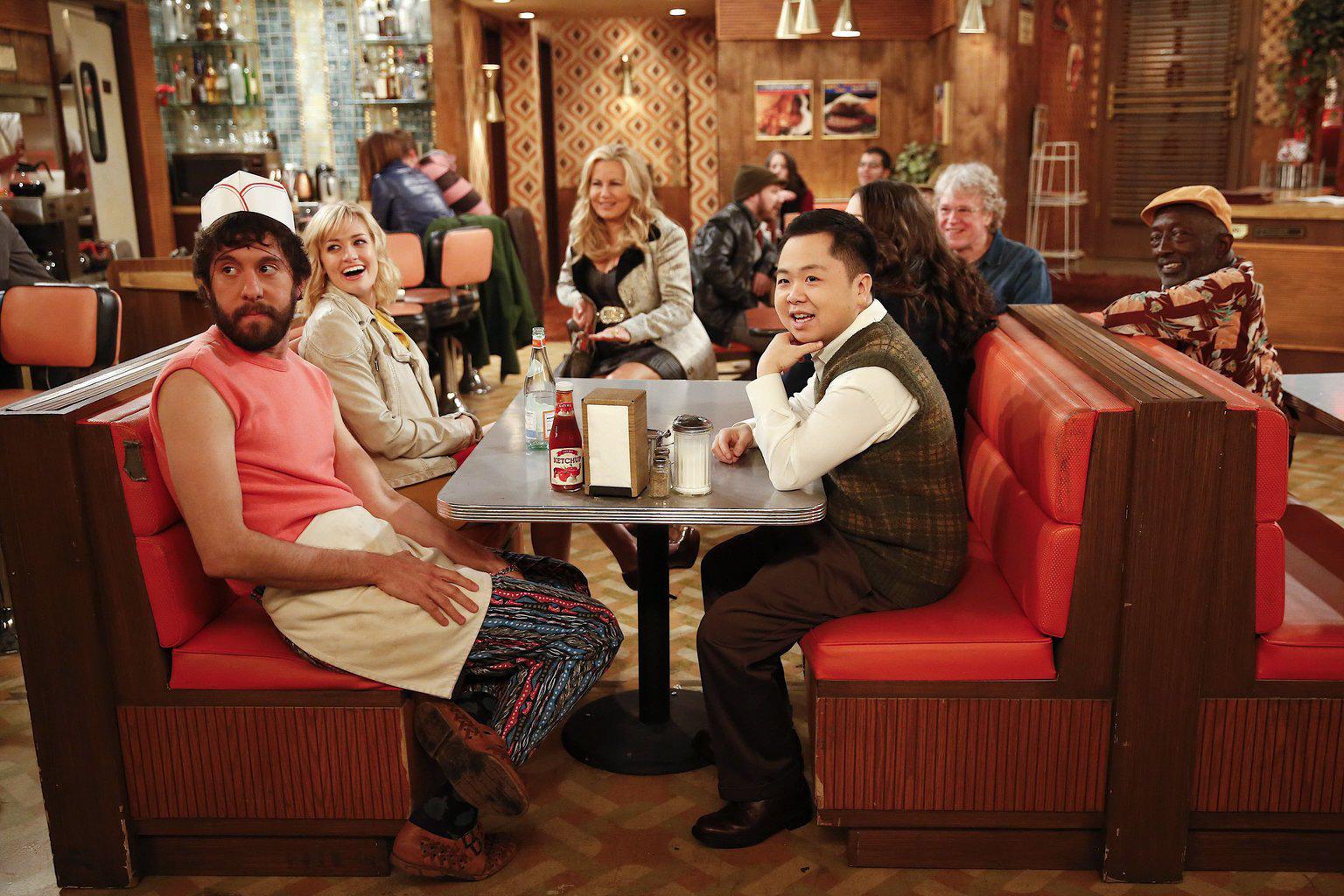 Die AbrissbirneHans (Matthew Moy, r.) Diner steht vor dem Aus, was gleichzeitig auch das Ende des Cupcake-Fensters von Max (Katt Dennings, l.) und Caroline (Beth Behrs, M.) bedeutet, wenn den Dreien kein Plan einfällt, den Abriss des Gebäudes zu verhindern ...Bild: © Warner Brothers