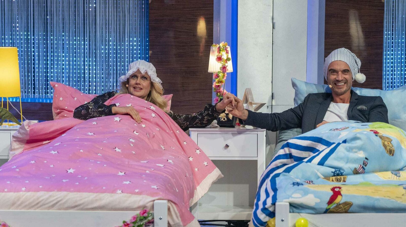 2021 - Das QuizSpiel "Ab unter die Decke" mit Barbara Schöneberger (l.) und Florian Silbereisen (r.)Bild: © NDR/Max Kohr