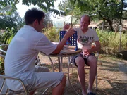 Mein Traum von Rente - Nochmal Neues wagenWenn es Abend wird in San Giorgio laden sich Domenico (l.) und Jürgen abwechselnd (r.) zum Aperitivo ein. Für Jürgen gehört dieses Ritual zum großen Glück, das er in "seinem" einsamen Bergdorf in Italien gefunden hat.Bild: © ZDF und Jule Sommer./Jule Sommer