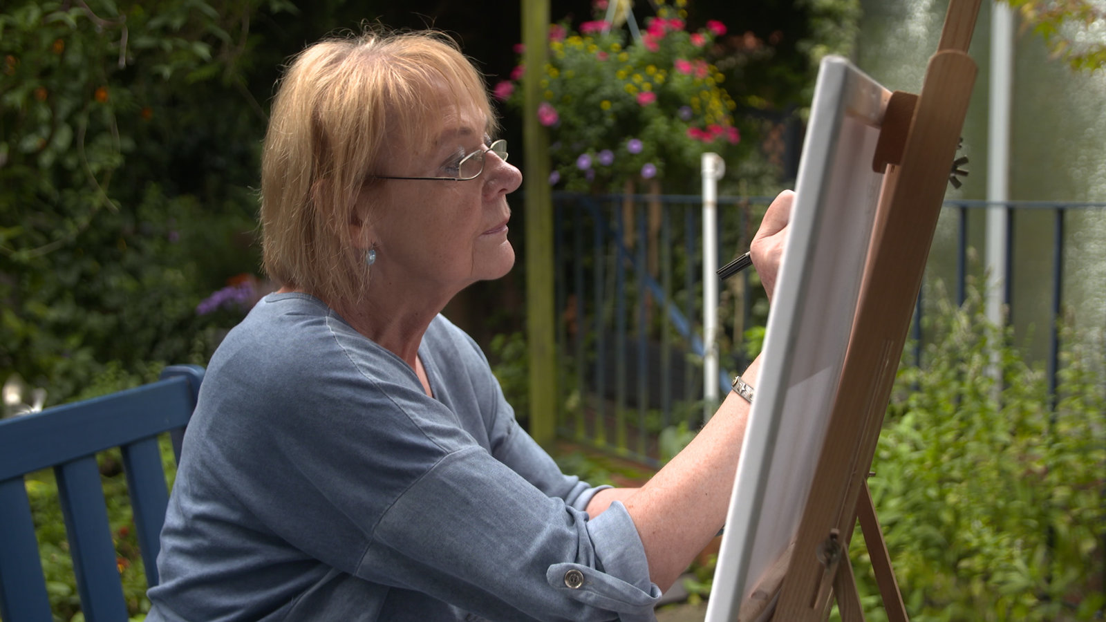 Was bin ich ohne dich? - Wie Angehörige den Suizid überlebenDie 73-jährige Christel verarbeitet den Verlust ihres Mannes in ihren Bildern.Bild: © ZDF und Reiner Bauer
