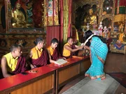 Die Reise meines Lebens - Ruby sucht nach ihrer MutterAm Ende der "Reise ihres Lebens" lässt sich Ruby (r.) und ihre nepalesische Familie von Mönchen in einem buddhistischen Kloster segnen. Das hat sich Ruby zum Abschied gewünscht.Bild: © ZDF und Tina Radke-Gerlach