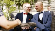 Countdown zum Hochzeitstraum - Wie Paare heute heiratenMarian (l.) und Bastian (r.) heiraten im Park der Sinne bei Hannover. Das Paar setzt bei seiner Hochzeit auf die "Do it yourself"-Devise und bindet dafür seine Freunde und Familien ganz besonders ein.Bild: © ZDF und Steve Schick.