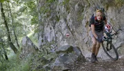 Bevor Jürgen zu einer seiner heiß geliebten Mountainbike-Touren starten kann, muss er sein Rad den Berg hochschleppen. Rund um San Giorgio gibt es keine Straßen.Bild: © ZDF und Jule Sommer.