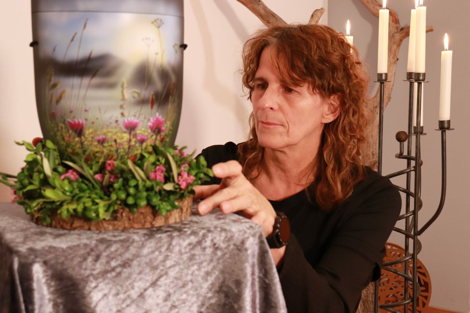 Vom Anfang und Ende des Lebens - Arbeiten als Hebamme und BestatterinWenn eine Trauerfeier ansteht, bereitet die Bestatterin Ellen Matzdorf alles liebevoll vor.Bild: © ZDF und Reinhard Bettauer.