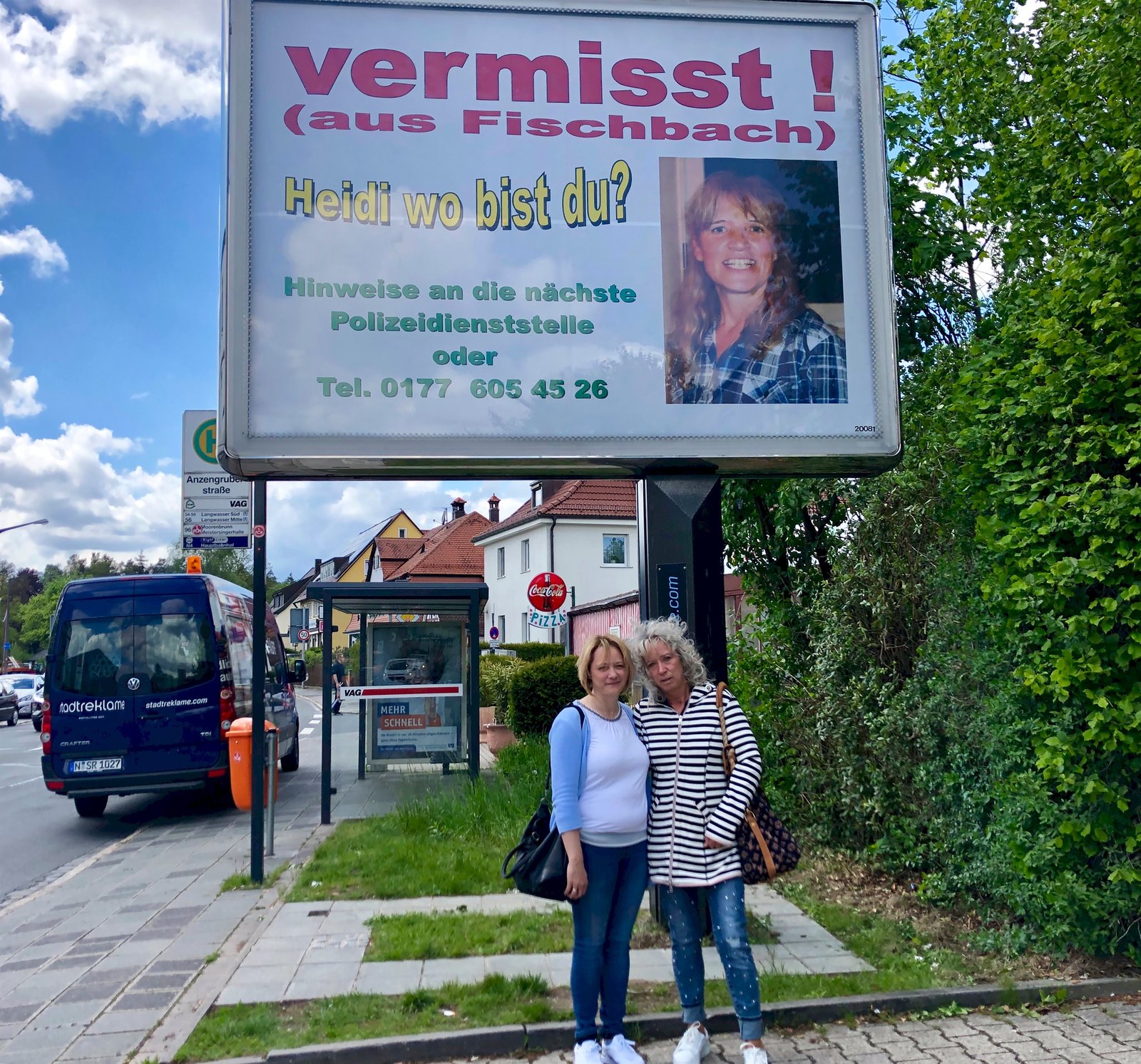 Von Hundert auf Null - Menschen in QuarantänePetra und Stephanie vermissen ihre Schwester Heid seit über sechs Jahren. Sie geben die Suche nicht auf und haben wieder ein Plakat aufgestellt.Bild: © ZDF und Iris Bettray.