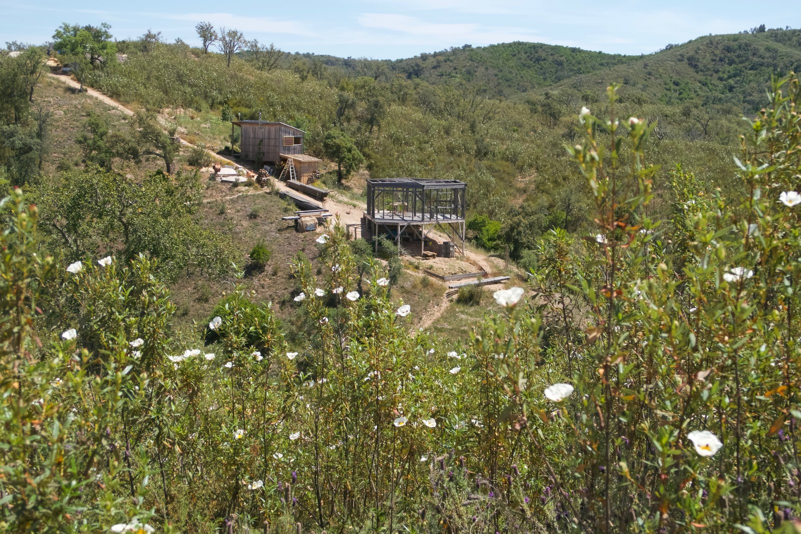 Zwei Bayern und 40.000 Bienen - Leben für ein Paradies in PortugalVin und Isa leben in einer winzigen Holzhütte am Hang. Seit über einem Jahr bauen sie unterhalb davon an ihrem Holzhaus. Das Baumaterial soll keine Chemikalien enthalten. Doch die Konstruktion bereitet immer wieder Probleme.Bild: © ZDF und Michael Petsch