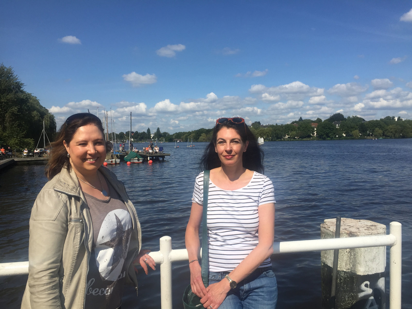 Plötzlich im Flutlicht - Vom Leben als SpielerfrauCathy Hummels mit ihrer Schwester Vanessa Fischer an der Isar in München.Bild: © ZDF und Süddeutsche TV GmbH