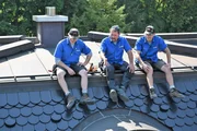 Dachdeckerfamilie Grimm macht Brotzeit auf ihrer Baustelle in München. Alle Drei sind schon mal abgestürzt oder abgerutscht. Passiert ist ihnen, außer Prellungen, noch nichts. Ihren Beruf lieben sie. Von oben sieht alles ganz anders aus.Bild: © ZDF und Enrico Demurray./Enrico Demurray