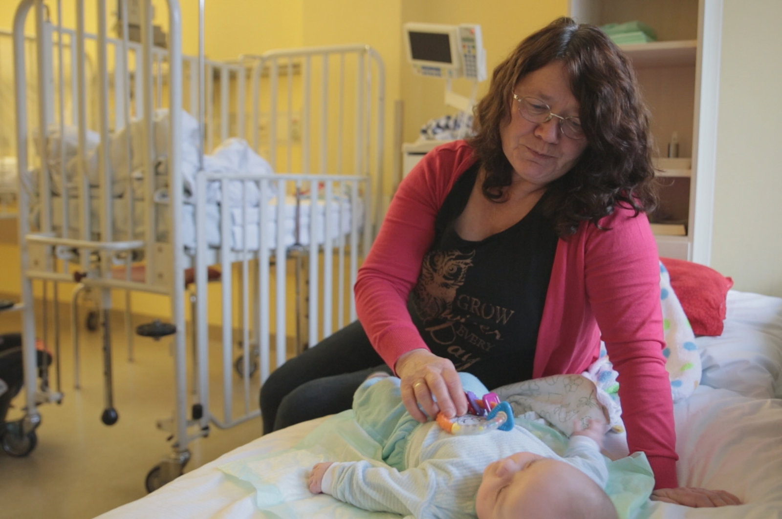 Eltern auf Zeit - Wenn fremde Kinder Hilfe brauchenSeine Pflegemutter besucht Marco, das schwer verletze Baby, anfangs täglich in der Klinik.Bild: © ZDF und Anabel Münstermann