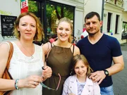Plötzlich im Flutlicht - Vom Leben als SpielerfrauKatja Baumgart (l.) mit ihrem Mann Steffen (r.) und ihren Töchtern Emilia (2.v.l.) und Fiona (2.v.r.).Bild: © ZDF und Süddeutsche TV GmbH