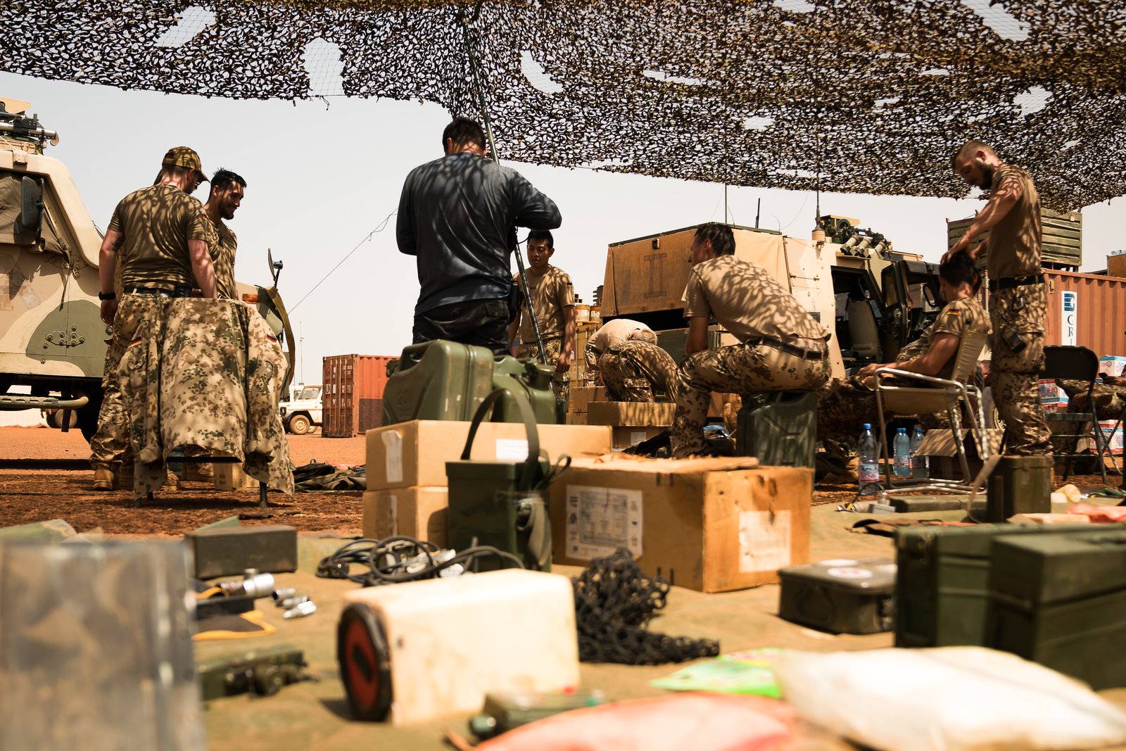 Einsatz im Wüstensand - Ein Soldat auf FriedensmissionPrüfung der Vollzähligkeit. Ausrüstung und Technik kosten mehrere Millionen Euro.Bild: © ZDF und Daniél Piedrola