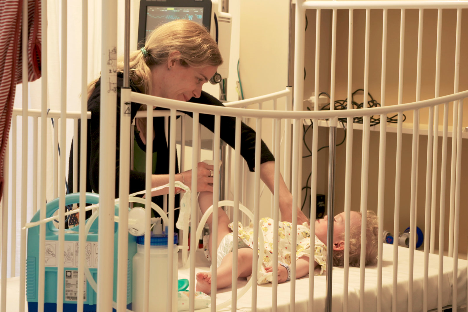 Kampf um jeden Atemzug - Wie Eltern ihr Kind retten wollenLeo hat Zysten im Hals. Deshalb muss seine Luftröhre operativ untersucht werden. Die Zeit vor der Vollnarkose ist für Mutter Anja besonders schwer.Bild: © ZDF und Eyk Friebe