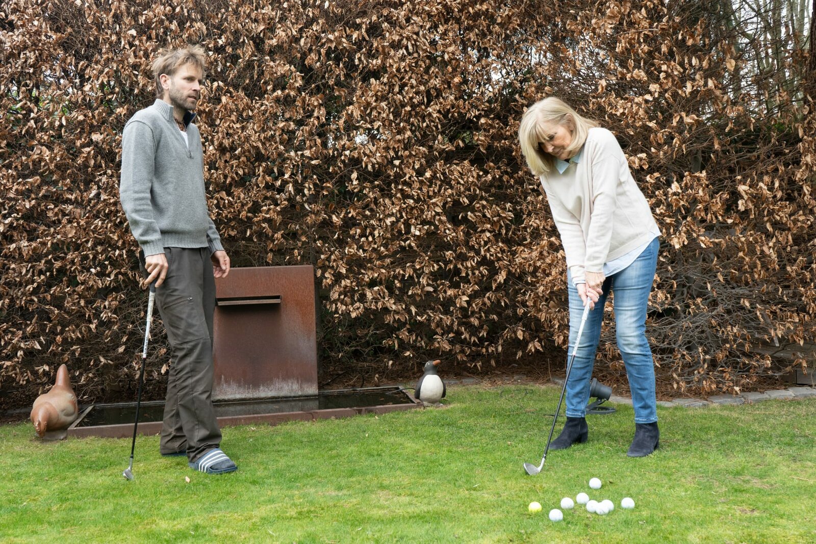 Zuhause im Wald - Leben abseits der ZivilisationFrüher Golflehrer, heute "Waldmensch": Marc (47) gibt seiner Mutter eine seltene Privatstunde.Bild: © ZDF und Frank Harroider.