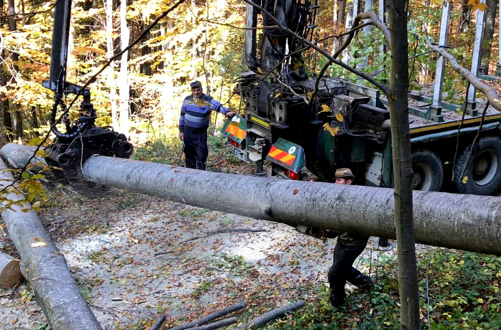 Waldgold - Europas Urwald in GefahrHolzstämme aus einem Nationalpark werden zum Abtransport verladen.Bild: © phoenix/ZDF und MAnfred Karremann
