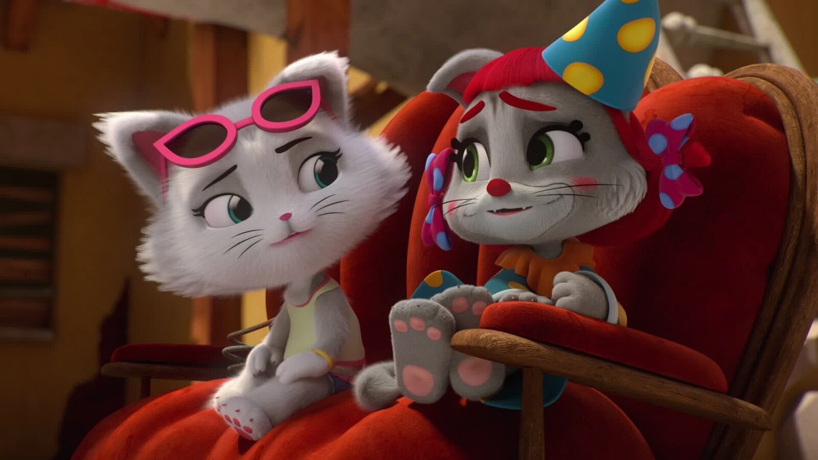 Der KatzenwettbewerbOma Pina mag alle Katzen gleich gern. Trotzdem wollen Lampo und Milady (l.) unbedingt herausfinden, wer von ihnen die bessere Katze ist.Bild: © SUPER RTL
