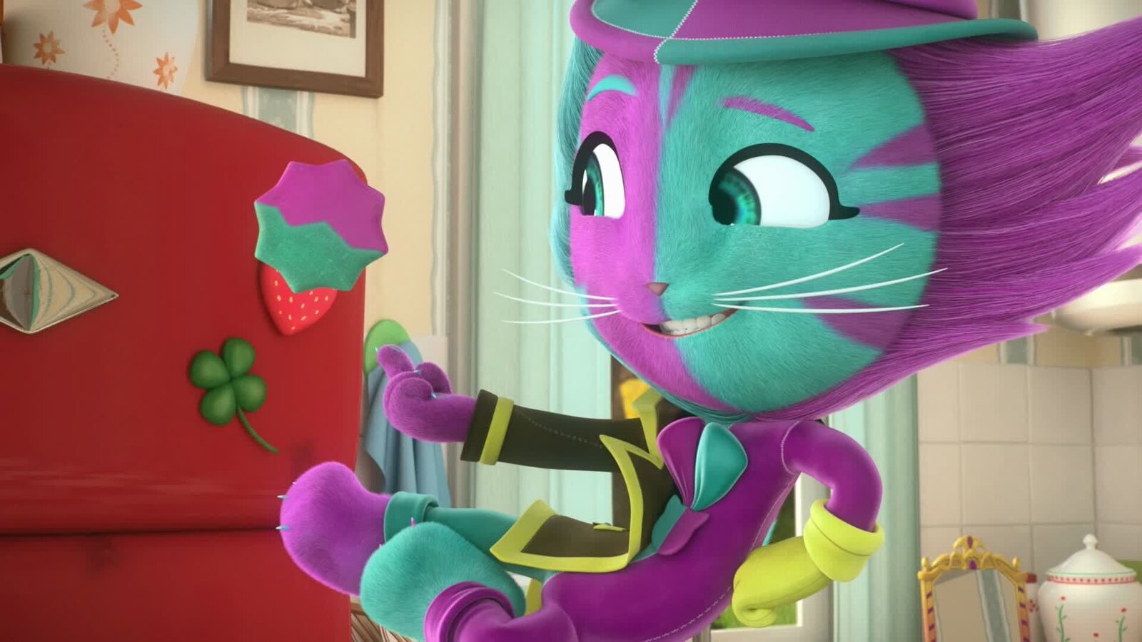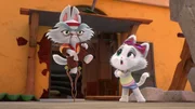 Snobine, die schicke KatzeMetti kann sich aber auch mal fürchten. Vor allem der fiese Nachbar Vincent hat es auf ihn abgesehen..Bild: © Super RTL