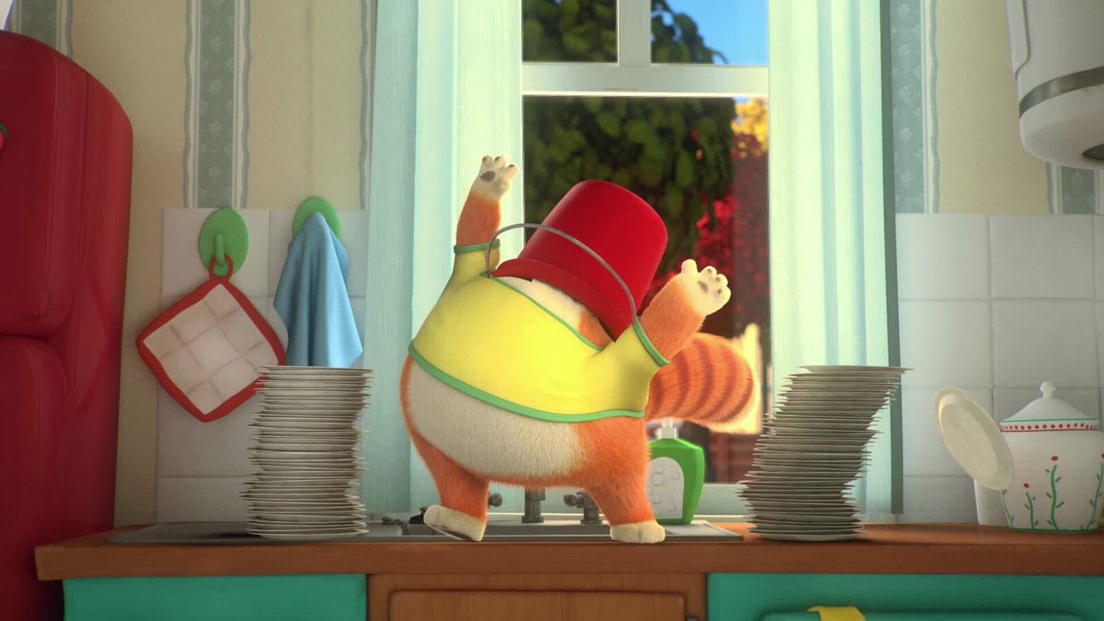 Katzengeschichten am LagerfeuerMetti kann vom Essen nie genug bekommen und stibitzt gerne etwas aus Oma Pinas Kühlschrank.Bild: © Super RTL