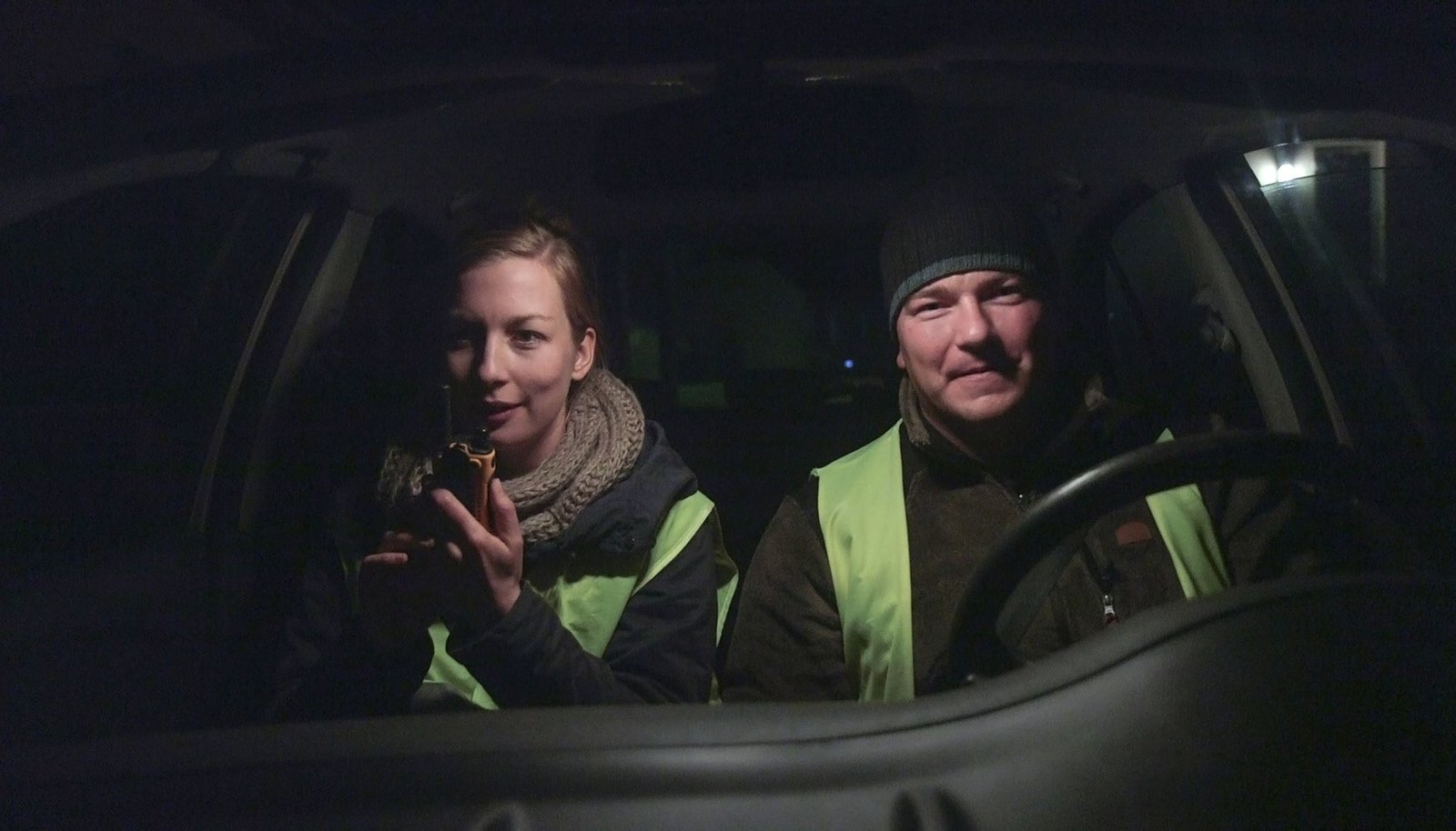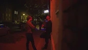 ... in der BürgerwehrReporterin Frida Thurm (l.) mit Streifengänger Henry Meisel (r.): „Pole, das sagt man eben so.“Bild: © NDR/Hans Jakob Rausch