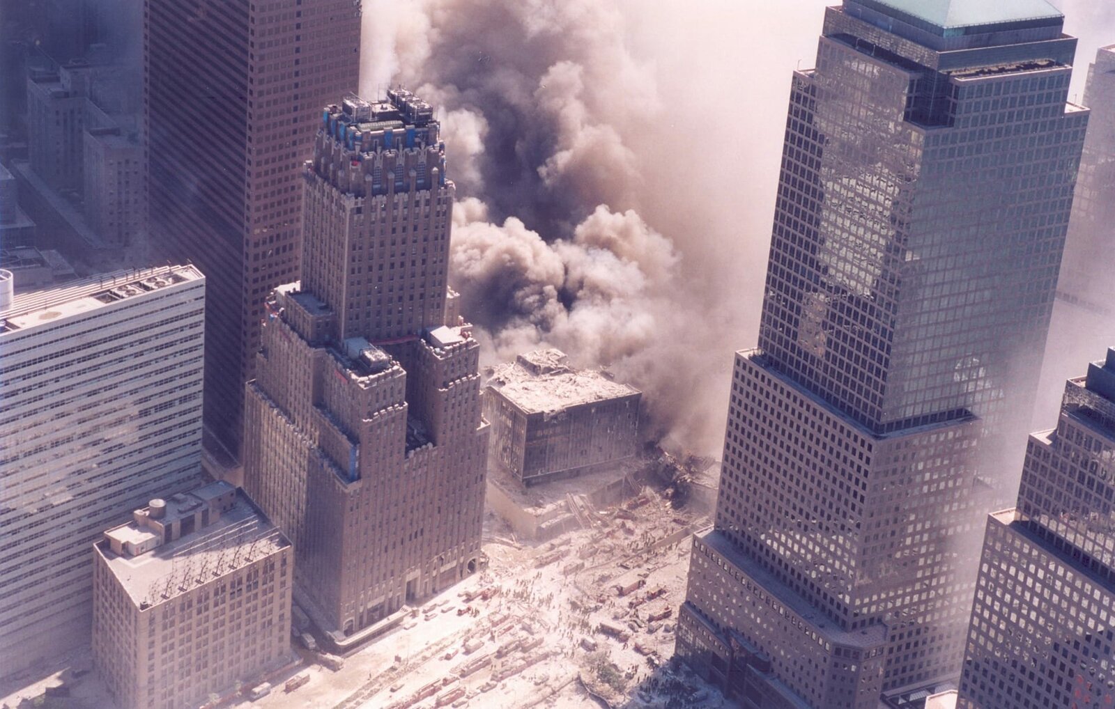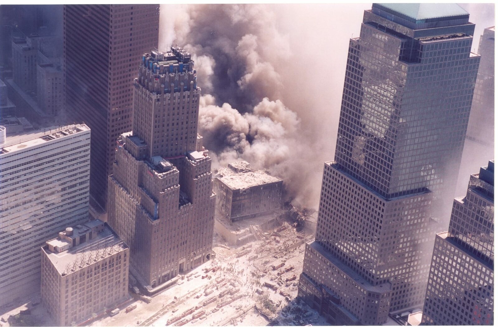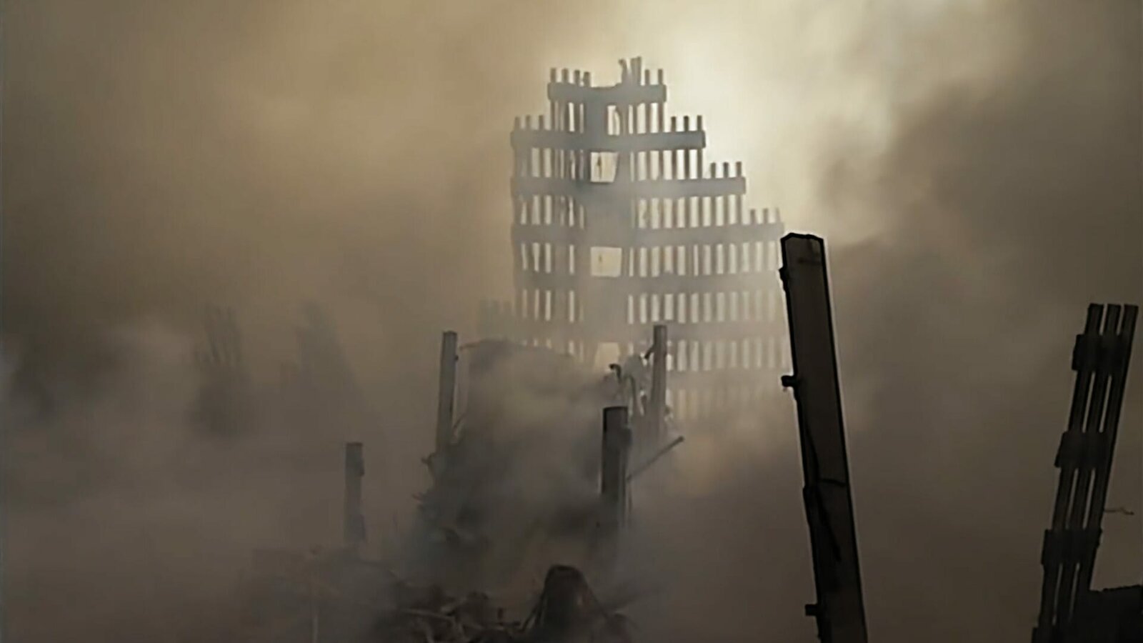 Der SüdturmAn aerial view of ground zero burning after the September 11 terrorist attacks. (Photo Credit: NIST)Bild: © NIST / National Geographic Channels / Public Domain