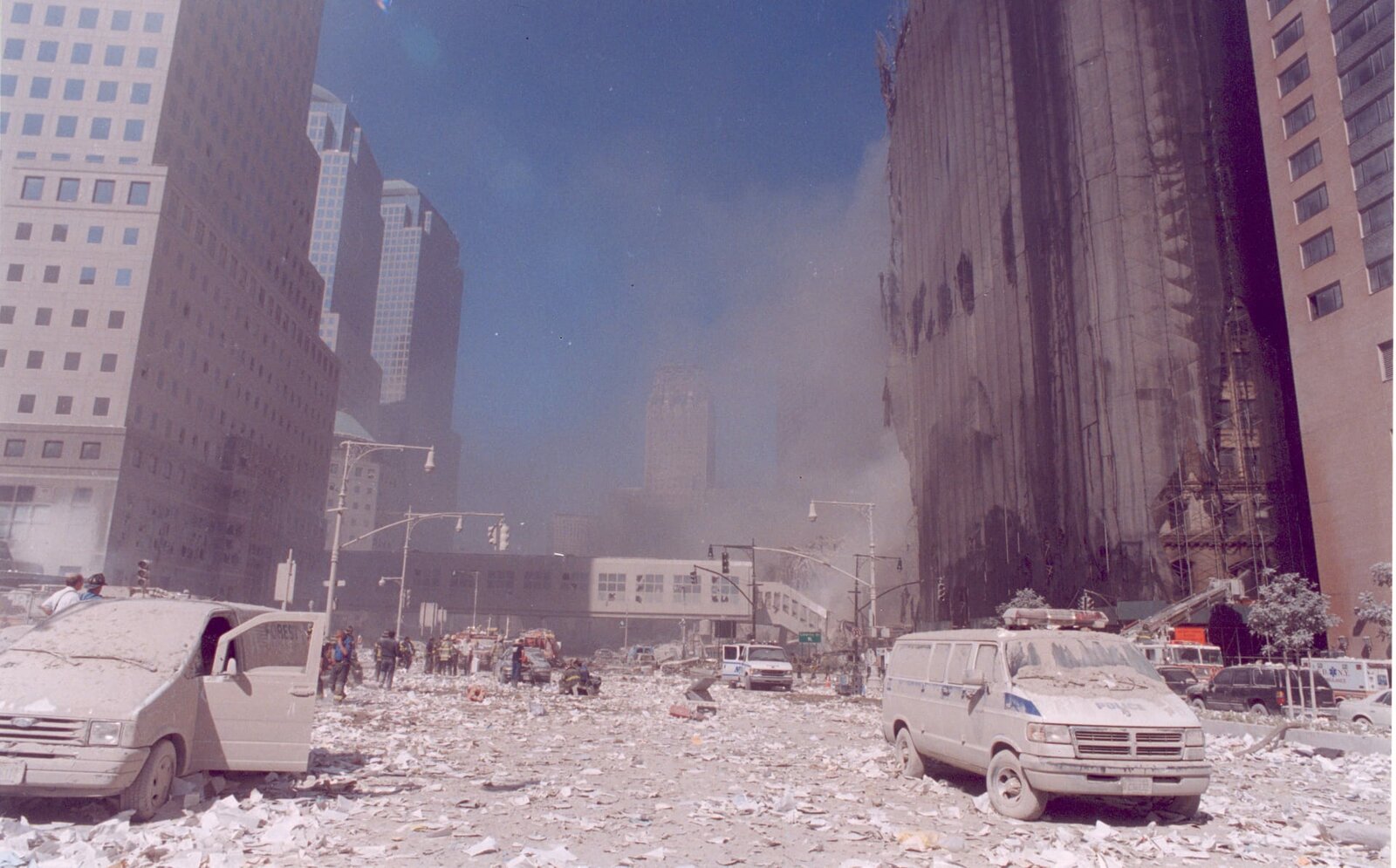 Erste HilfeThe World Trade Center during the September 11 terrorist attacks. (Photo Credit: NIST)Bild: © NIST / NIST / National Geographic Channels / public domain