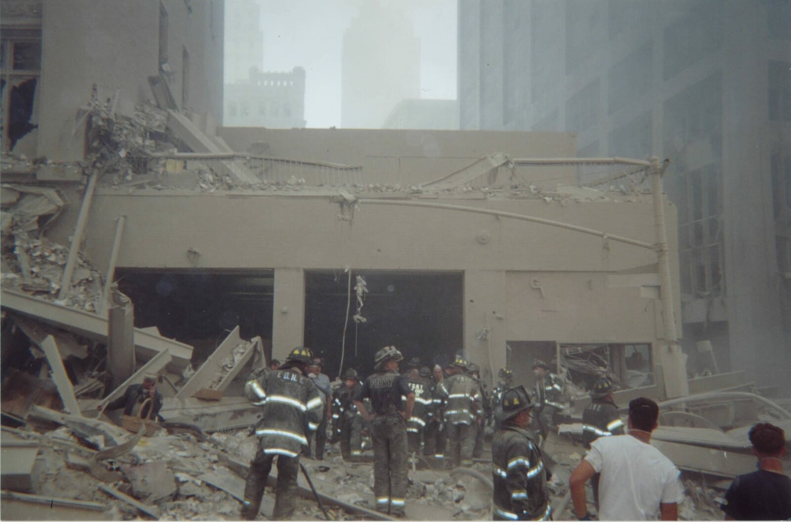 Der SüdturmGround zero burning after the September 11 terrorist attacks. (Photo Credit: NIST)Bild: © NIST / National Geographic Channels / Public Domain