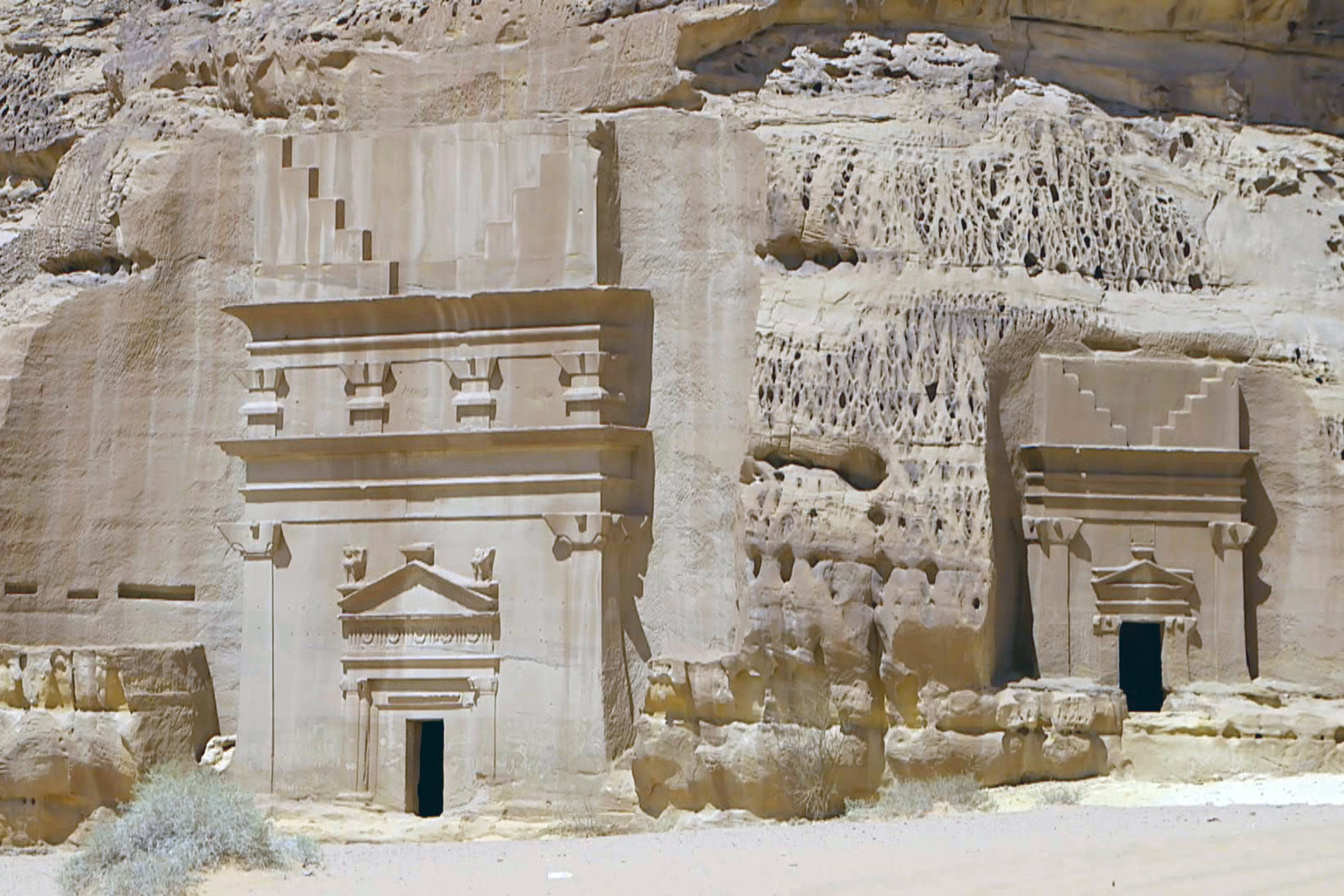 Hegra - Auf den Spuren der NabatäerRund hundert in die Felsen gemeißelte Monumentalgräber aus der Zeit vom ersten vorchristlichen bis zum ersten nachchristlichen Jahrhundert zeugen in Hegra von den Kulturpraktiken der Nabatäer.Bild: © ARTE France / © Alle Rechte vorbehalten