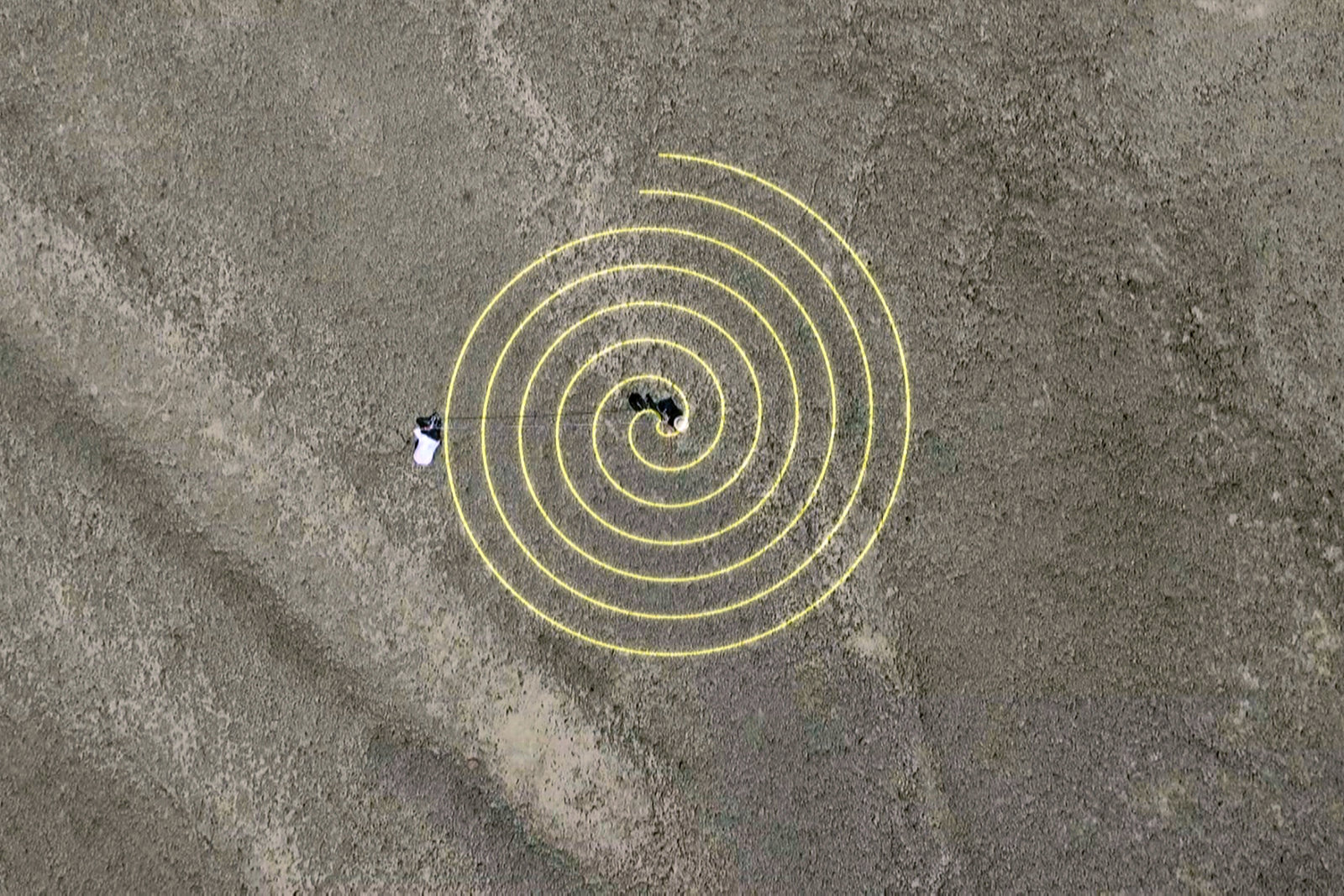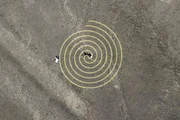 Das Geheimnis der Nazca-LinienIm Feldexperiment haben die Archäologen herausgefunden, wie die Nazca komplexere Zeichnungen realisierten, zum Beispiel Spiralen.Bild: © ARTE France / © Alle Rechte vorbehalten