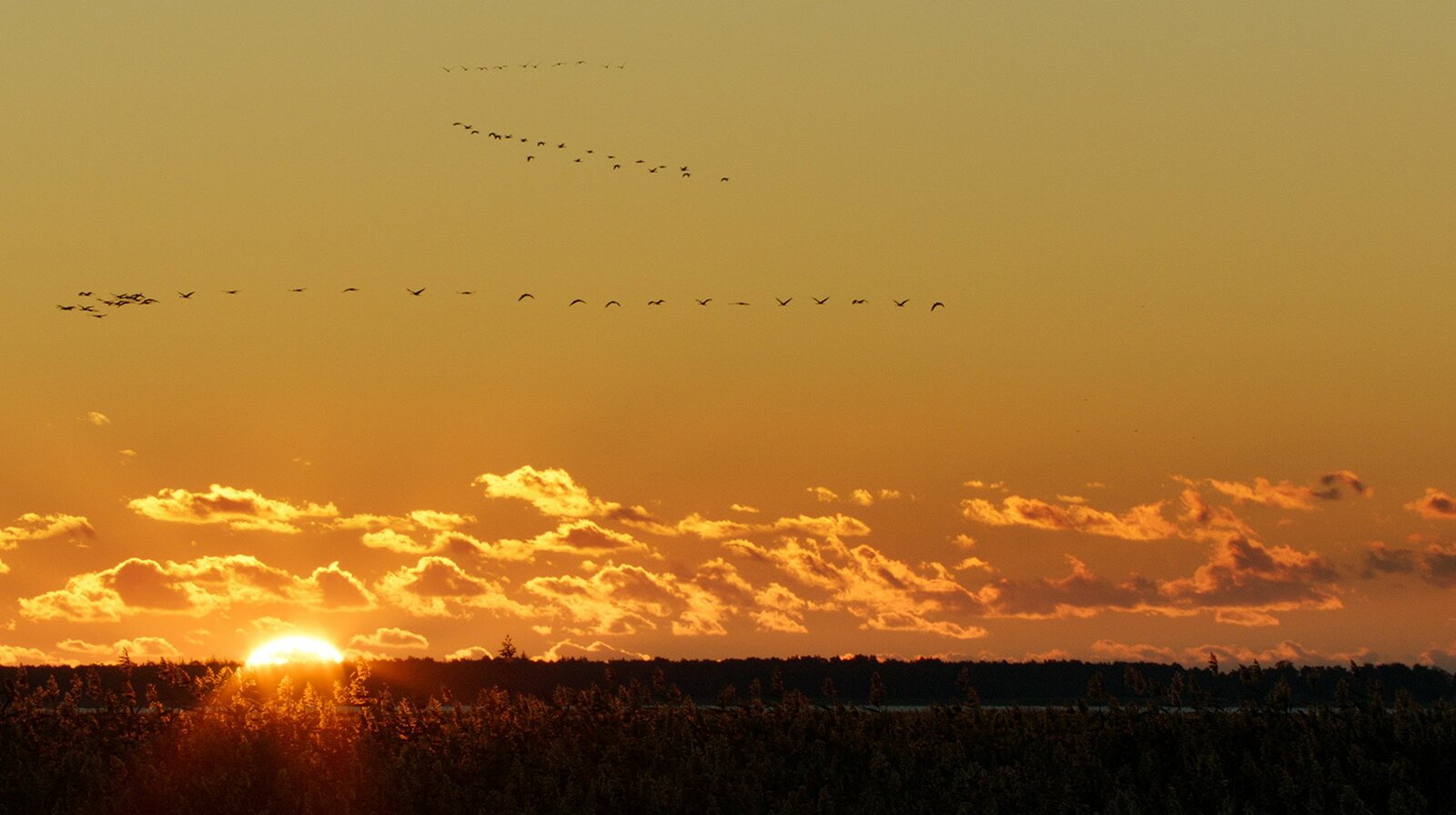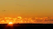 HerbstweltenEin Schwarm Kraniche fliegt in den SonnenuntergangBild: © WDR/Marco Polo Film/Steffen Sailer
