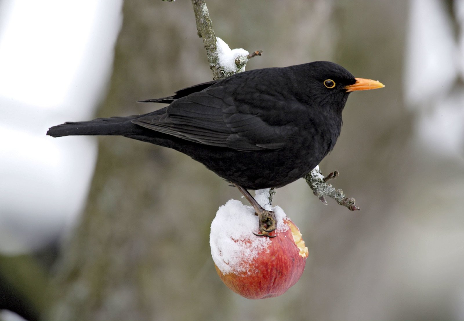 Das Alte Land - Niedersachsens ObstgartenIm Winter finden Amseln auf alten Streuobstwiesen noch ausreichend Nahrung.Bild: © BR/NDR/Günter Goldmann