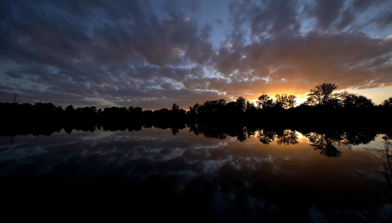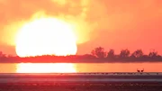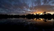Dschungel unter Wasser: Das geheimnisvolle Leben im BaggerseeSonnenuntergang an einer ehemaligen Kiesgrube. Wo früher Bagger ans Werk gingen, folgt das Leben heute dem Rhythmus der Natur.Bild: © BR/Längengrad Filmproduktion GmbH/WDR