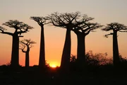 Ein Wald voller Gespenster - Lemuren im Dschungel MadagaskarsAffenbrotbäume: Diese Baumriesen durchsetzen mit ihren plumpen, flaschenförmigen Stämmen den gesamten Trockenwald. Die Baumriesen verdanken ihr Überleben bis heute wohl dem Aberglauben, nach dem sie für heilig erklärt wurden.Bild: © WDR/WDR/Gerd Weiss