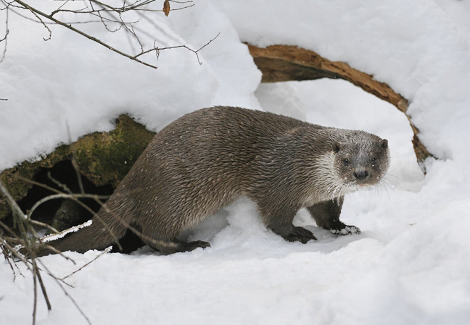 Der Böhmerwald - Eine Wildnis mitten in EuropaEin Fischotter kommt aus seiner Höhle unter dem Eis hervor.Bild: © MDR/MDR/ARTE/Rudolf Vornehm