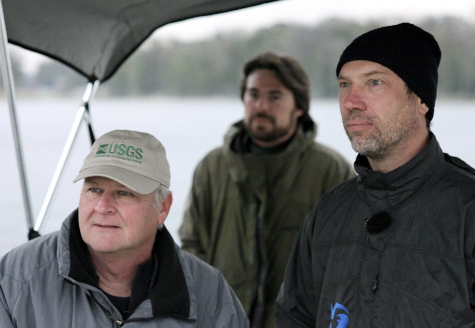 Manatis mögen's heiß - Floridas SeeküheThomas Behrend (rechts) und Bob Bonde beobachten das "Manatee-Rescue-Team" bei der ArbeitBild: © BR/NDR/NDR Naturfilm/Tobias Kaufman