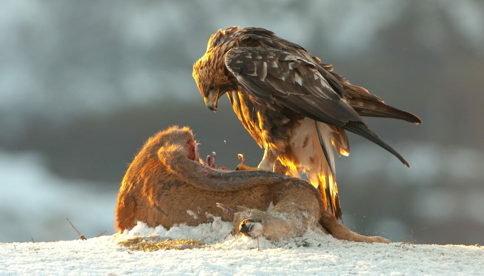 Im Winter werden Steinalder zu Aasfressern - hier frisst ein Steinadler ein verendetes Reh.Bild: © WDR/nautilusfilm