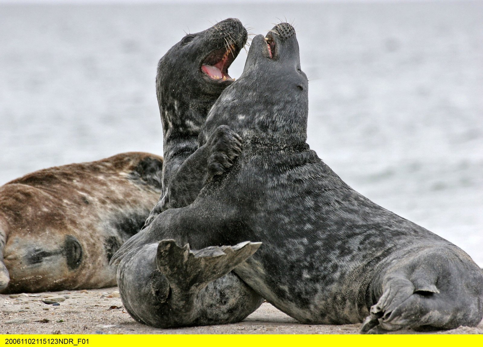 Seehund ahoi!Zwei junge Kegelrobben-Männchen beim Kräftemessen.Bild: © BR/Grospitz & Westphalen Filmproduktion/NDR/Ingo Bartussek