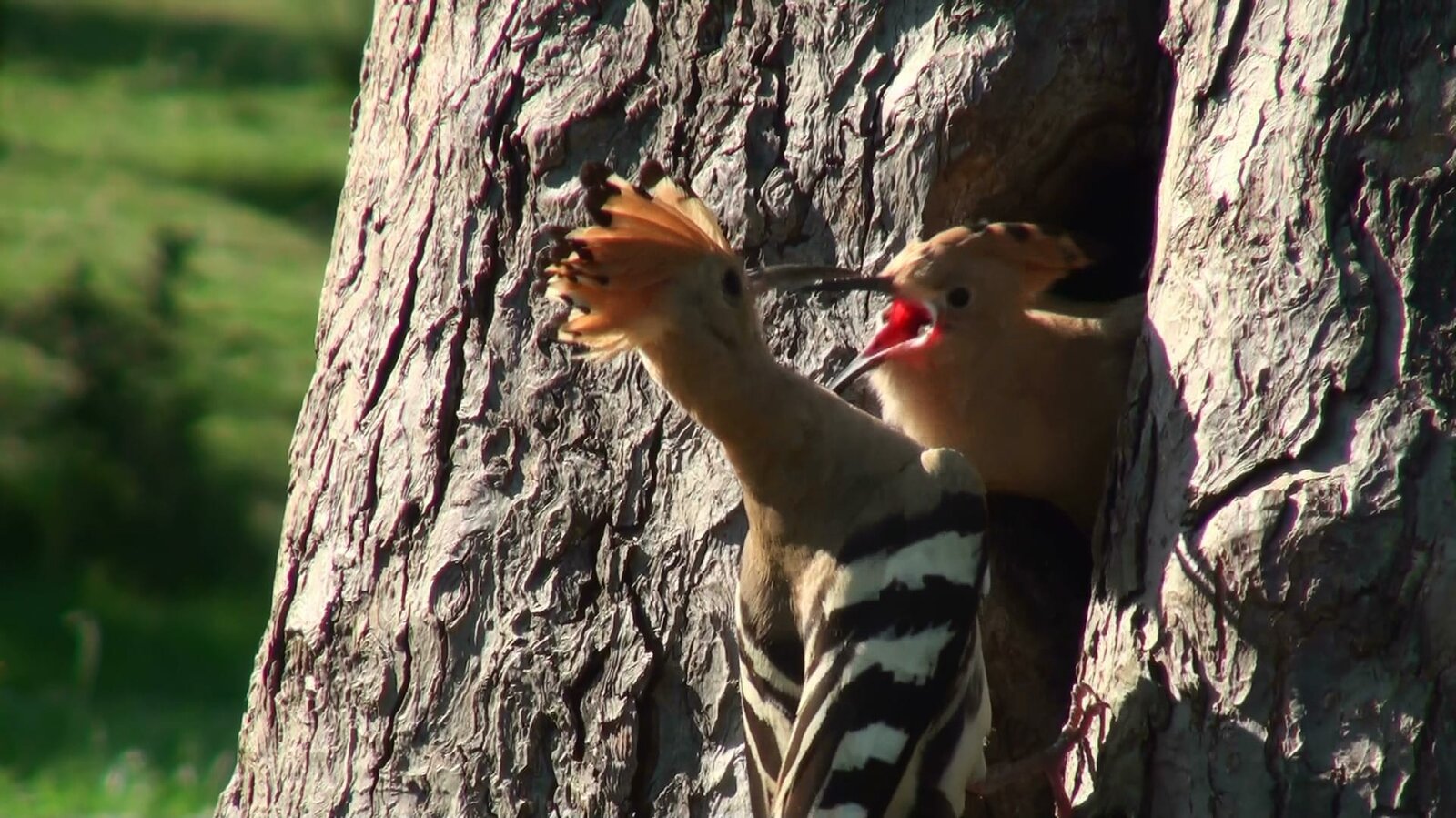 Vögel auf WohnungssucheEine Bruthöhle einer Wiedehopf-Familie in einem alten Apfelbaum, an der gerade gefüttert wird.Bild: © BR/Eberhard Meyer