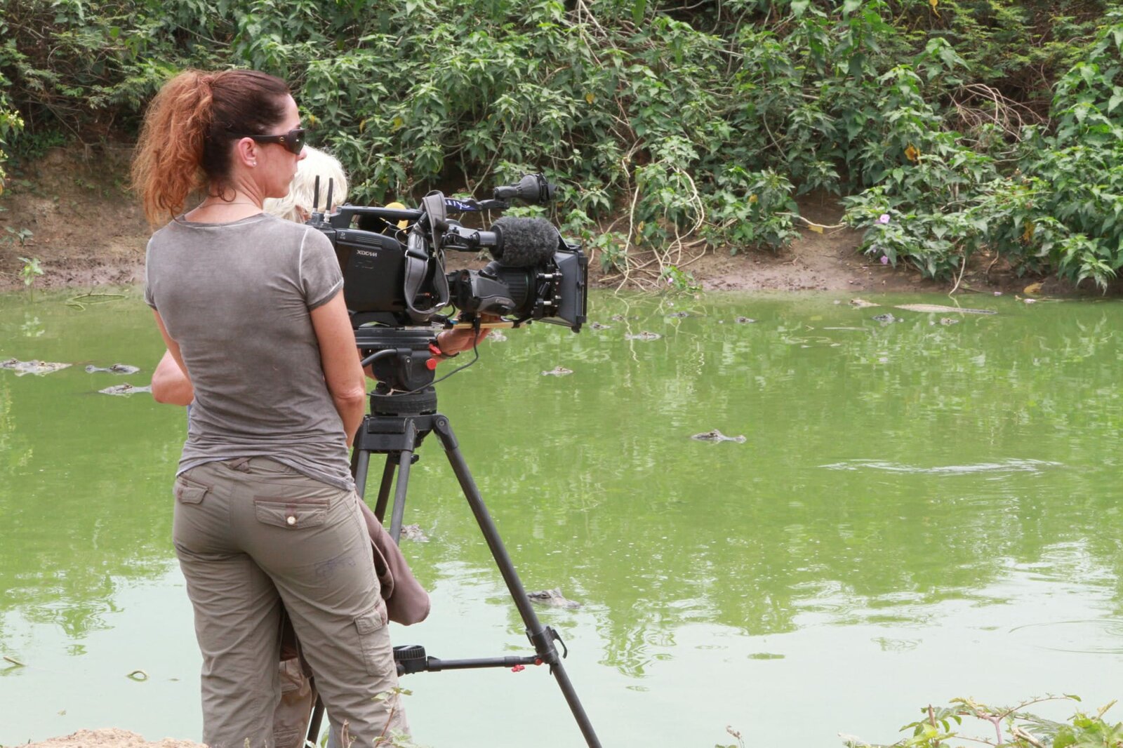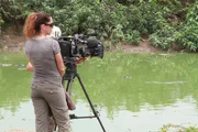 Transpantaneira - Brasiliens wilder HighwayDas Team dreht an einem Tümpel voller Kaimane.Bild: © BR/Douglas Trent