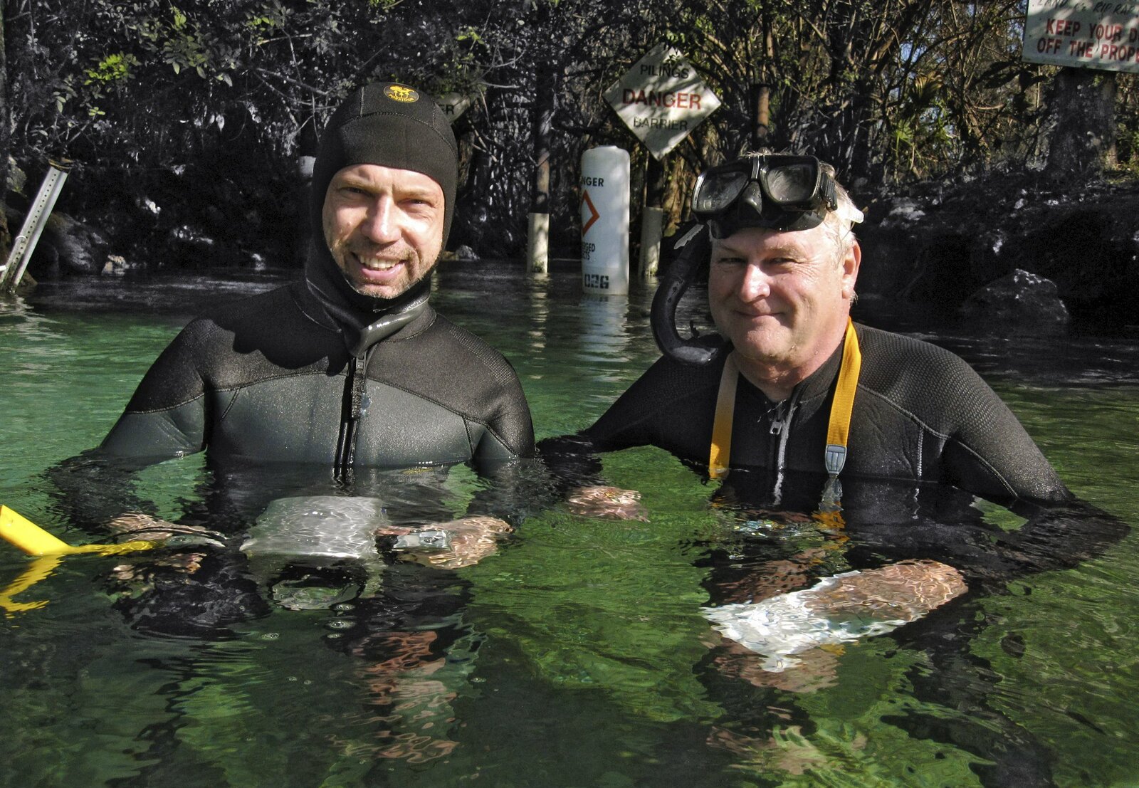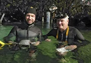 Manatis mögen's heiß - Floridas SeeküheThomas Behrend (links) und Bob Bonde nach dem gemeinsamen Tauchgang.Bild: © BR/NDR/NDR Naturfilm/Christina Karliczek