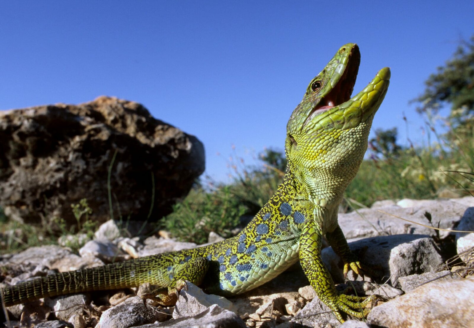 Der Duft der Provence - Trüffelhunde und LavendelEine Perleidechse im Hochzeitskleid. Das seltene Reptil gibt es nur noch an wenigen Plätzen in der Provence.Bild: © "Bild: NDR/NDR/naturf