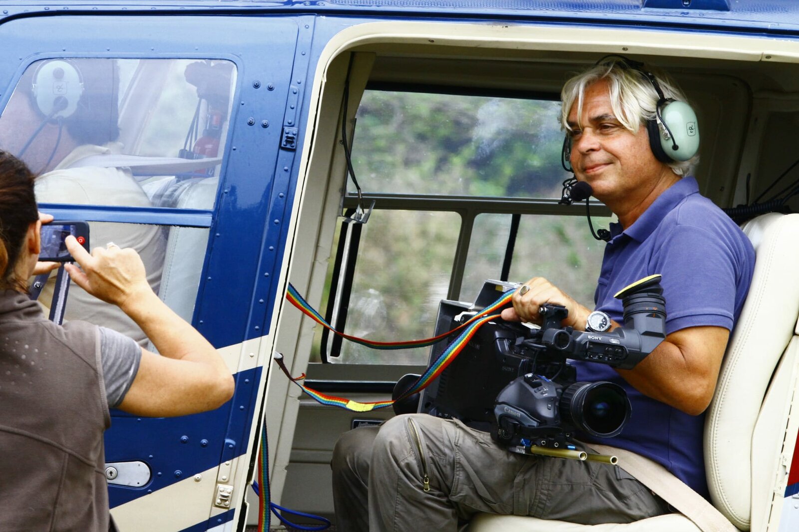 Transpantaneira - Brasiliens wilder HighwayKurz vor dem Start der Flugaufnahmen über die Transpantaneira: Um gute Aufnahmen zu gewähren, muss dem Helikopter die Seitentüre ausgebaut werden. Ein spezielles Stabilisierungssystem - Gyros genannt - ist an die Kamera befestigt, um Flugaufnahmen zu optimieren.Bild: © BR/Douglas Trent